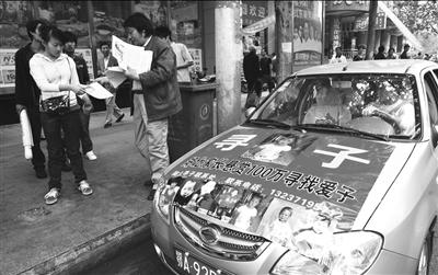 當天11時許,在漢口中山大道民意四路路口,許多市民圍在一輛銀灰色小車前。小車前部和側面都被彩色噴繪覆蓋著,上面印有7個孩子的照片、名字和丟失日期。這7個孩子的照片和資料顯示,他們是在1998年到2008年之間丟失,丟失時最大的12歲,最小的只有2歲。