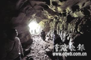 村民在大足七寶山溶洞查看遭破壞的鐘乳石