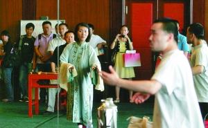 昨日,國家京劇院的排練館里,6名演員在參觀者面前認(rèn)真對戲。隔壁,一名女演員“表演”著化妝、穿戴,準(zhǔn)備唱一出“天女散花”,這些幕后工作平時(shí)并不對外開放。