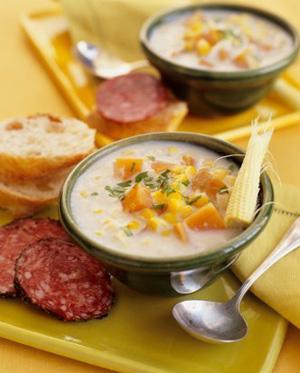 湯類非常有益健康,而且價格低廉、易于制作。可是,罐裝濃湯是由鹽、脂肪、人造添加劑、防腐劑,或許還有一些脫水胡蘿卜調(diào)制成的營養(yǎng)價值非常低的“混合物”。一罐濃湯含1000毫克鈉,大約是你每天所需量的一半。因此,還是自己準(zhǔn)備雞肉、牛骨和蔬菜,親手做一碗熱騰騰、香噴噴的湯吧。