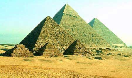 在古代埃及文中,金字塔是梯形分層的,因此又稱作層級金字塔。這是一種高大的角錐體建筑物,底座四方形,每個側面是三角形,樣子就像漢字的"金"字,所以我們叫它"金字塔"。