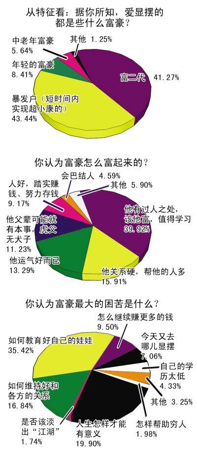 重慶社科院專家孫元明認為,富豪總會被投以或羨慕,或嫉妒的眼光,這引起無數圍繞“富豪”的話題。其實表明,人人都想變成富豪。在富豪的身上,無論你能挑剔出他多少缺點和不是,但不可否認的是,富豪總有不同一般人的長處,他們或許是比你們更有毅力,更能吃苦,或者僅僅是更會交際,但這一個“更”字,就讓他們跨入了富豪的圈子。記者 王薇 見習記者 張思思 實習生 杜鑫