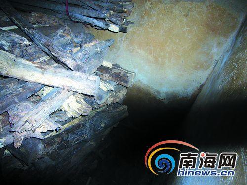 南國都市報記者來到楊才邦4年來藏匿的地點——白沙縣七坊鎮光雅照明經濟場。記者進了主屋左拐走進一間大約4米長的里屋,繼續往里走就是楊才邦4年以來藏身的廚房。廚房角落里有一個大約1米多高的木材堆,仔細看才能看出那是用木材堆積成的小暗房,小暗房長寬不足2米,正好可以容納一個人。