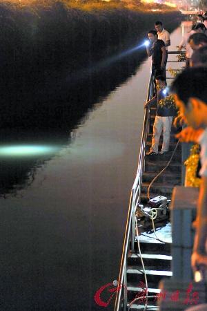 前晚8時(shí)許,瀾石大涌岸邊異常熱鬧。一小時(shí)前,一對情侶從此跳了下去。70多歲的周伯說,他看到一對男女突然跑向?yàn)懯笥浚芭雍孟襁蹭了男子兩下,然后就直奔河涌,跳了下去。接著后面的男子也跟著跳了下去。”