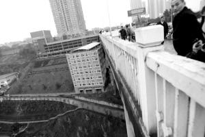 昨日下午5時(shí)18分,九龍坡陳庹大橋。一個(gè)做汽車(chē)銷(xiāo)售的老板在痛苦的吼叫中,在家人和跪在地上的兒子的注視中,縱身飛躍,結(jié)束了自己41歲的生命。