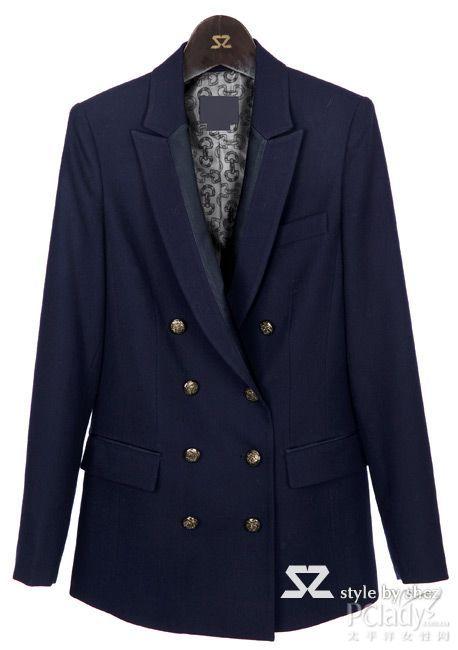 我們經常可以從正統的制服中窺見雙排扣的影蹤,如軍裝、校服等。拋棄了黑色西裝的呆板沉悶,深藍色調卻為你帶來一種冷靜沉著的情緒,也在視覺上有收縮的的效果,讓你身材更顯瘦。金色的雙排紐扣就如點睛一般地與深藍色面料對比得十分好看,這款充滿制服正式感的西裝絕對是為知性OL而存在的,硬挺的面料和剪裁別致的領型,為你帶來十足的干練感!