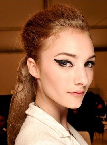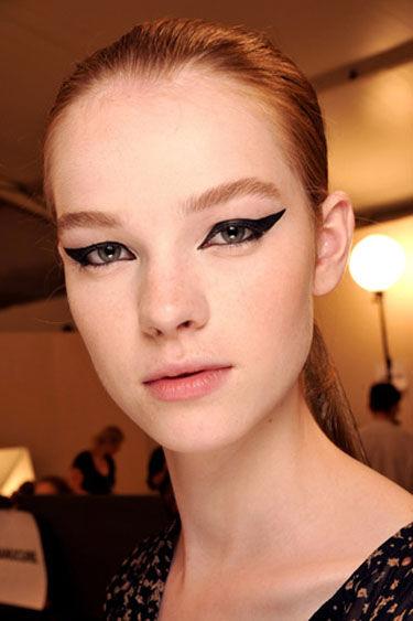 你所能看到的這種,線條干凈、輪廓分明、顏色飽和濃重、在眼角舒展上揚的黑色眼線,屢屢登上T臺,在Chanel、Dolce &Gabanna、Cavalli的模特們的臉上演繹得淋漓盡致。
