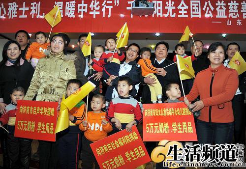 繼去年“愛灑五岳•情系江山”公益捐贈活動在章丘獲得強烈反響后,11月11日上午,國內知名奶粉企業雅士利集團再次攜手中華慈善總會走進山東,對山東地區兒童的健康和教育給予特別關愛,希望繼續將“愛心”與“溫暖”灑向齊魯大地。