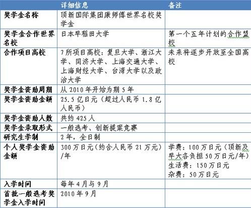 頂新集團康師傅世界名校獎學金早稻田大學項目說明
