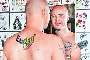 信息時(shí)報(bào)綜合報(bào)道 據(jù)英國(guó)媒體3日?qǐng)?bào)道,澳大利亞一名失業(yè)漢知道雙親渴望到歐洲旅行后,為讓他們今年有個(gè)難忘的結(jié)婚周年紀(jì)念,毅然向歐洲鐵路公司提出建議,他把該公司的標(biāo)志賣廣告文在身上,換取兩張免費(fèi)歐洲游車票,沒想到最后竟得償所愿。