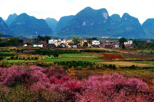 恭城瑤族自治縣的桃花盛開正當(dāng)時