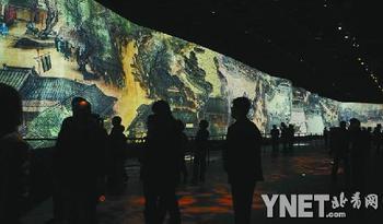 對于這幅電子巨作,以前媒體也報道的不少了,不過這幅圖到底有多大,似乎有兩種說法,有人說這幅圖是原作的100倍大,這顯然是夸張了,按照現場的解說,通過投影和動畫技術幻化出來的《清明上河圖》,比原作放大了30倍,實際是高6.3米、長130余米,觀眾走馬觀花還是得看10分鐘。
