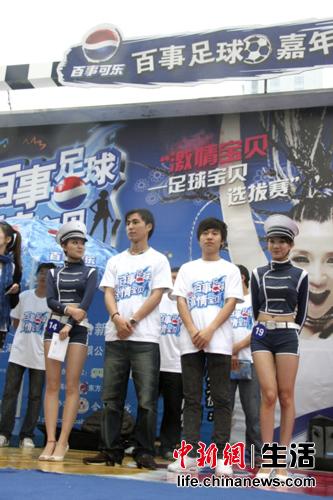 中新網(wǎng)5月17日電 近日,“百事足球,激情寶貝——走進(jìn)南非選拔賽”足球夢(mèng)之隊(duì)6強(qiáng)選手再次前往足球嘉年華,給觀眾帶來(lái)視聽新感受。雖然天空下起綿綿細(xì)雨,但還是無(wú)法澆熄大家對(duì)活動(dòng)的熱情,6強(qiáng)的球員們唱歌、跳舞、玩技巧樣樣精通,與足球?qū)氊?強(qiáng)配合也十分默契,最終通過(guò)足球知識(shí)的問答,決選出2位最佳球員贏得了與足球?qū)氊愐黄鹎巴戏堑耐ㄐ凶C。
