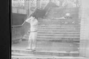 事后,我們通過監(jiān)控錄像看到了那令人心碎的一幕。黃濤所在小區(qū)停車場(chǎng)比太極大道要低許多,黃濤夫妻要通過太極大道上的太康醫(yī)院旁邊的幾十級(jí)臺(tái)階,才能走到太極大道上。監(jiān)控錄像顯示,黃濤走在右邊,妻子走在左邊,夫妻緩緩邁上了臺(tái)階,往太極大道走。在上臺(tái)階時(shí),黃濤還將雙手背在身后,妻子邊走邊翻皮包,像是在準(zhǔn)備買菜的錢。當(dāng)夫妻倆走到臺(tái)階上的第二個(gè)平臺(tái)時(shí),一根鋼管突然飛來,砸在黃濤身上,黃濤當(dāng)即倒地,滾落了10級(jí)臺(tái)階后,躺在了地上。冉紅霞慌了,跪在丈夫的身邊,搖著丈夫,希望丈夫醒來。雖然監(jiān)控畫面沒有聲音,但很多市民看到冉紅霞雙手抓頭的痛苦樣子,都哭了。