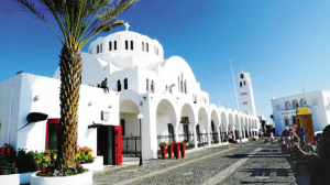說到圣托里尼島,眼前自然便浮現出迷人的藍白二色。