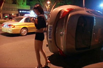 高跟女子翻車毫發無損