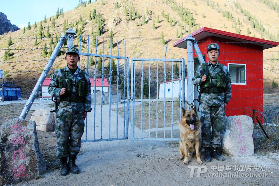 楊建軍、樊瑞祥與哈力擔負營門警衛。朱德華 攝