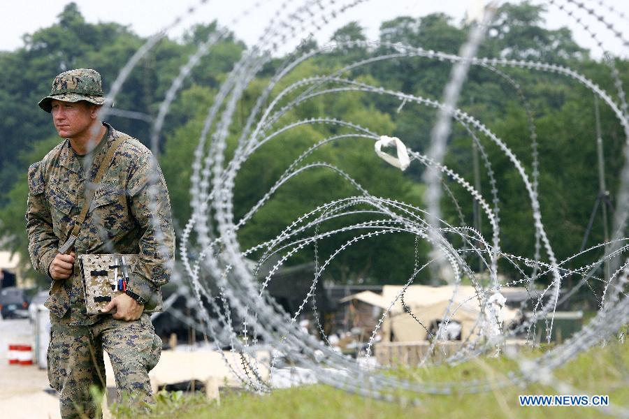 美菲兩棲聯(lián)合軍演第二天,當(dāng)天來自美國兩極攻擊艦“好人理查德”號上的約120名美國海軍陸戰(zhàn)隊(duì)員和約30名菲律賓海軍陸戰(zhàn)隊(duì)員來到了菲律賓塔拉省的烏鴉峽谷,參加直升機(jī)突襲項(xiàng)目的演習(xí)。