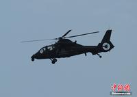 中新網(wǎng)珠海11月11日電(陳海峰) 中國(guó)陸航直19武裝直升機(jī)11日在珠海航展上空進(jìn)行了精彩的飛行表演。