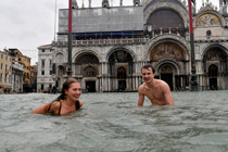 威尼斯洪水民眾水中游