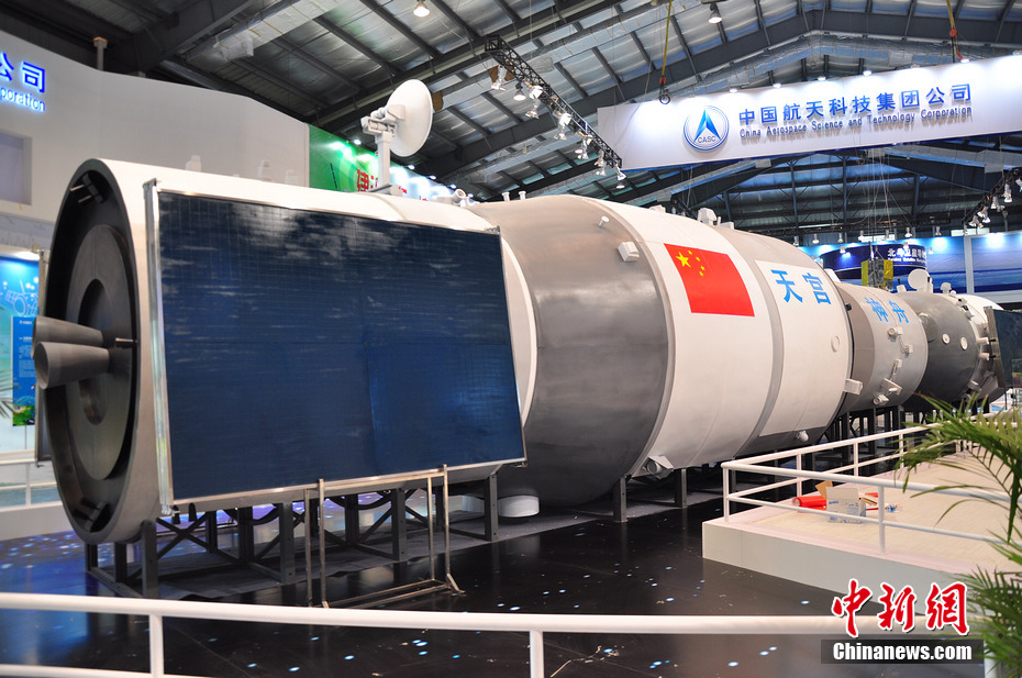 天宮一號空間站與神九飛船對接模型。陳海峰 攝