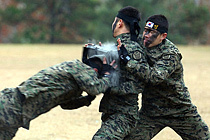 韓特種兵展示頭頂碎石