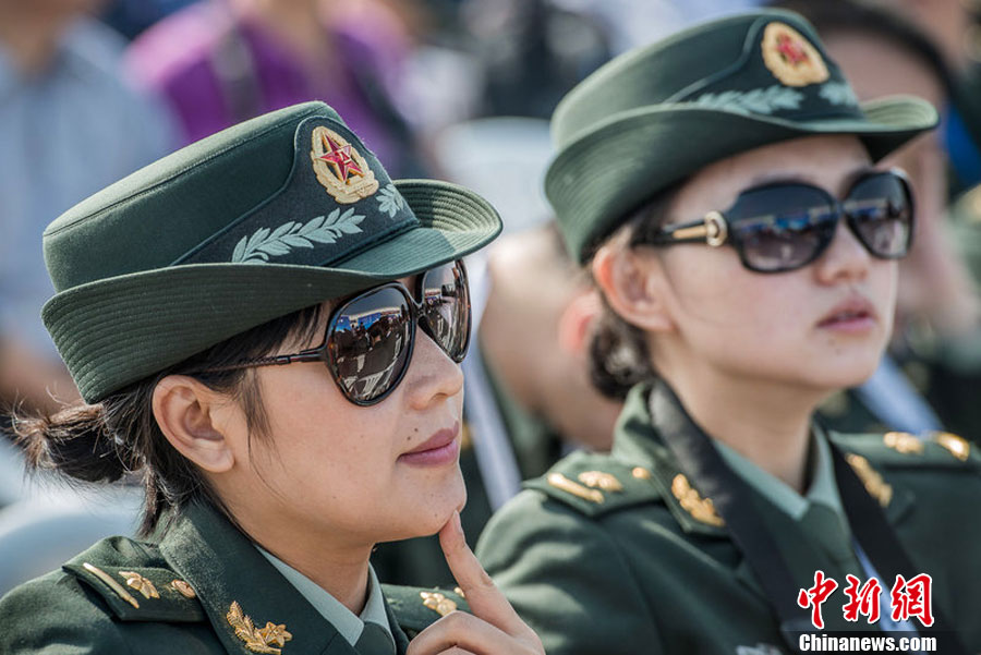 2012年11月13日,2012珠海航展,第九屆中國國際航空航天博覽會在廣東珠海開幕,解放軍觀眾席上的漂亮女兵。 圖片來源:東方IC 版權作品 請勿轉載