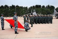 7月27日,參加中俄聯演的空軍戰斗群官兵出征前在國旗前集體宣誓,立志圓滿完成聯演任務,為祖國爭光。 曹占禮 攝(來源:中國軍網)