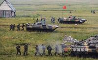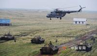8月8日中午,在俄羅斯車?yán)镅刨e斯克的切巴爾庫爾訓(xùn)練場的實兵演練場地,“和平使命-2013”中俄聯(lián)合反恐軍事演習(xí)首次合練在風(fēng)雨中按計劃進(jìn)行。