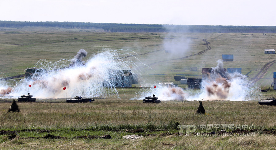 我坦克戰(zhàn)車對恐怖武裝力量實(shí)施火力打擊。李祥輝攝