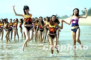 十月十三日,來自全國各地的數十名參加第九屆“模特之星”大賽的參賽模特,在廣東汕頭美麗的海灘上進行排練,展示美麗身姿。 十月十四日晚,選手們在廣州汕頭花園賓館內進行首次個人才藝演練。