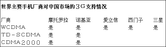 中國信息產業部估計,到2006年,3G市場將由65%至70%的WCDMA、約20%的CDMA20001X以及10%至15%的TD-SCDMA組成。