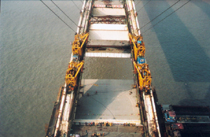 這塊橋面板中將安裝兩只名為“阻尼器”的減震裝置,其作用就像兩根彈簧,以減緩或防止突發性地震等災害所帶來的沖擊力,確保主橋安然無恙。(陸綺雯顧慶生)
