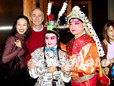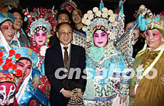 由美國齊淑芳京劇團演出的全本中國京劇《楊門女將》1月25日晚在紐約百老匯完成首次演出,這是繼1930年梅蘭芳在紐約演出以來中國京劇又一次登上百老匯舞臺。圖為中國駐紐約總領事張宏喜祝賀演出成功。作者:趙海燕