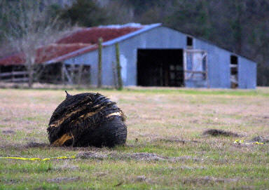 中新網2月2日電 北京時間2月1日晚上10時許,美國航天飛機哥倫比亞號在返航過程中于得克薩斯州上空失事墜毀。圖為失事后人們在地面發(fā)現的飛機殘骸。