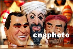 在美國和伊拉克以及本·拉登之間的爭端愈演愈烈的同時,仿造美國總統布什、恐怖大亨本·拉登和伊拉克總統薩達姆的形象的面具在美國及一些國家正逐漸成為熱銷產品。Ic/cnsphoto 攝