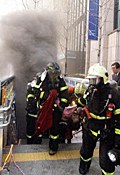 韓國救援人員搶救地鐵縱火案傷員