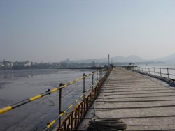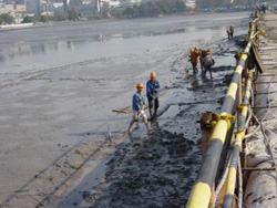 據中廣網報道,圍堰兩邊是截然不同的風景:一邊是碧波蕩漾,游船點點的秀麗西湖;一邊是湖底黑色的淤泥。中間圍堰有兩米多寬,全部用沙袋壘成,兩邊用鋼質構件固定,十分牢固。兩側水位的落差有三四米。抽干的湖底呈橢圓型,有幾臺小型水泵仍在工作,抽出從地下滲出的湖水。