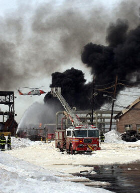 圖文詳訊:美國紐約州一家煉油廠因爆炸引發大火