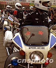 北京巡警二十四日舉行保“兩會”安全啟動儀式,以聲勢浩大的氣勢震懾犯罪分子。作者:宋吉河