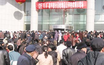 今天,為期六天的“慕馬腐敗大案”贓物拍賣預覽落幕,估計共有近十萬沈陽市民趕到展出現場“金劍大廈”,涌進面積不大的幾個展廳,可以用“人潮洶涌、比肩接踵、絡繹不絕”來形容,人數之多大大超出舉辦者的意料。