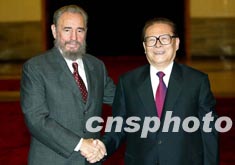 江澤民說,過去的十年是中古關系發(fā)展最快、最好的時期。我于一九九三年訪問古巴和您一九九五年訪問中國時,我們針對國際形勢的變化,深入交換了看法,達成了廣泛共識,為兩國關系確立了發(fā)展方向。
