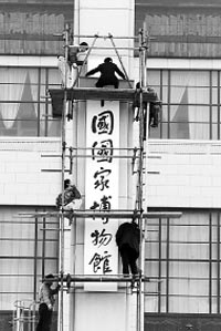 據(jù)國家文物局專電,2月28日上午10時,將隆重舉行由江澤民主席題寫的“中國國家博物館”牌匾掛牌儀式。同時,中國國家博物館的改擴建工程已經(jīng)國務(wù)院批準立項。中國國家博物館將建設(shè)成為一個與中國這樣一個大國地位相稱的,與中華民族悠久歷史和燦爛文明相稱的,與蓬勃發(fā)展的社會主義現(xiàn)代化事業(yè)相稱的,與廣大人民群眾日益增長的精神文化需求相稱的具有國際先進水平的博物館。
