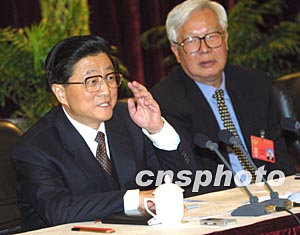 三月四日下午,中共中央政治局常委黃菊在北京看望出席全國政協十屆一次會議的科協、科技屆委員,并參加了聯組討論。作者:史利