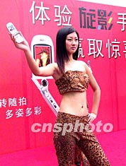 圖:廣州春季商戰(zhàn)開始 模特兒造勢展示手機