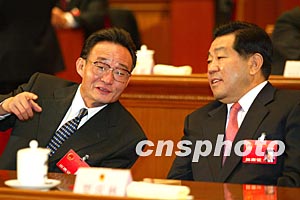 圖:吳邦國與賈慶林出席十屆人大一次會議第六次全體會議