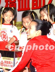 香港歌星莫文蔚在三月十八日香港屯門市中心廣場舉行的“捐血助人愛心大行動”上,擔任“愛心捐血之星”。中新社傳真 錢興強 攝