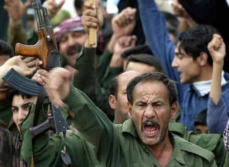 中新網3月19日電 當地時間3月18日,巴格達街頭爆發了大規模的抗議美軍入侵伊拉克的集會。由于薩達姆拒絕了美國的最后通牒,戰爭一觸即發。(春風)