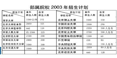 中新網3月30日電 據北京娛樂信報報道,二十所部屬、市屬高校今年在京招收的本科人數已經確定。今年,部屬院校基本上都不擴招,市屬高校則適當擴招。招生人數詳見右表。