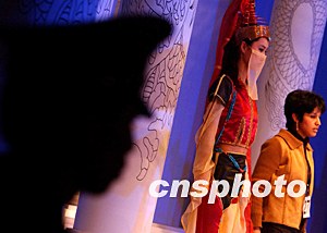 北京飯店的保安護衛著三月末在此間舉行的國際青年時裝師大賽,來自摩洛哥的學生正在展示她設計的迷人中東風情時裝。作者:賈國榮